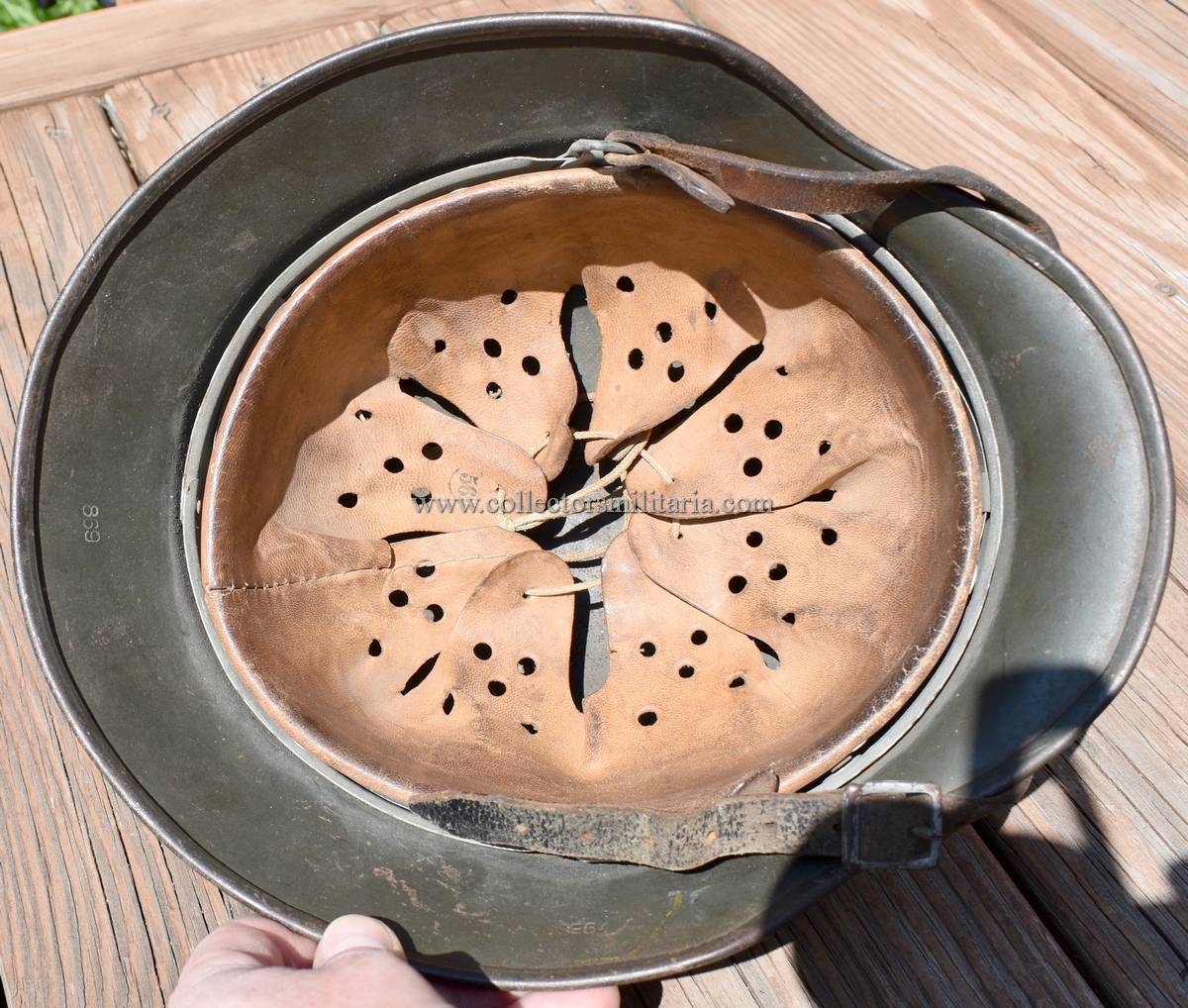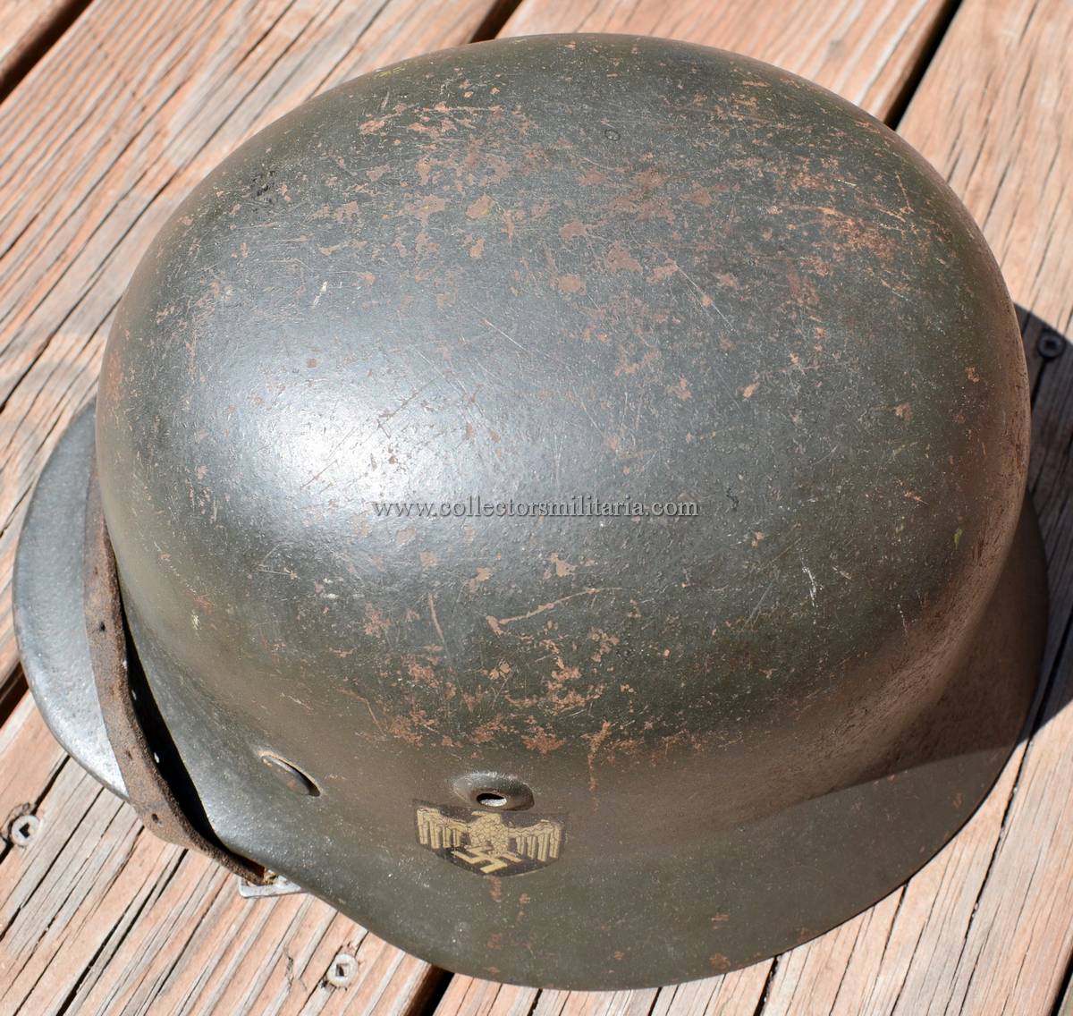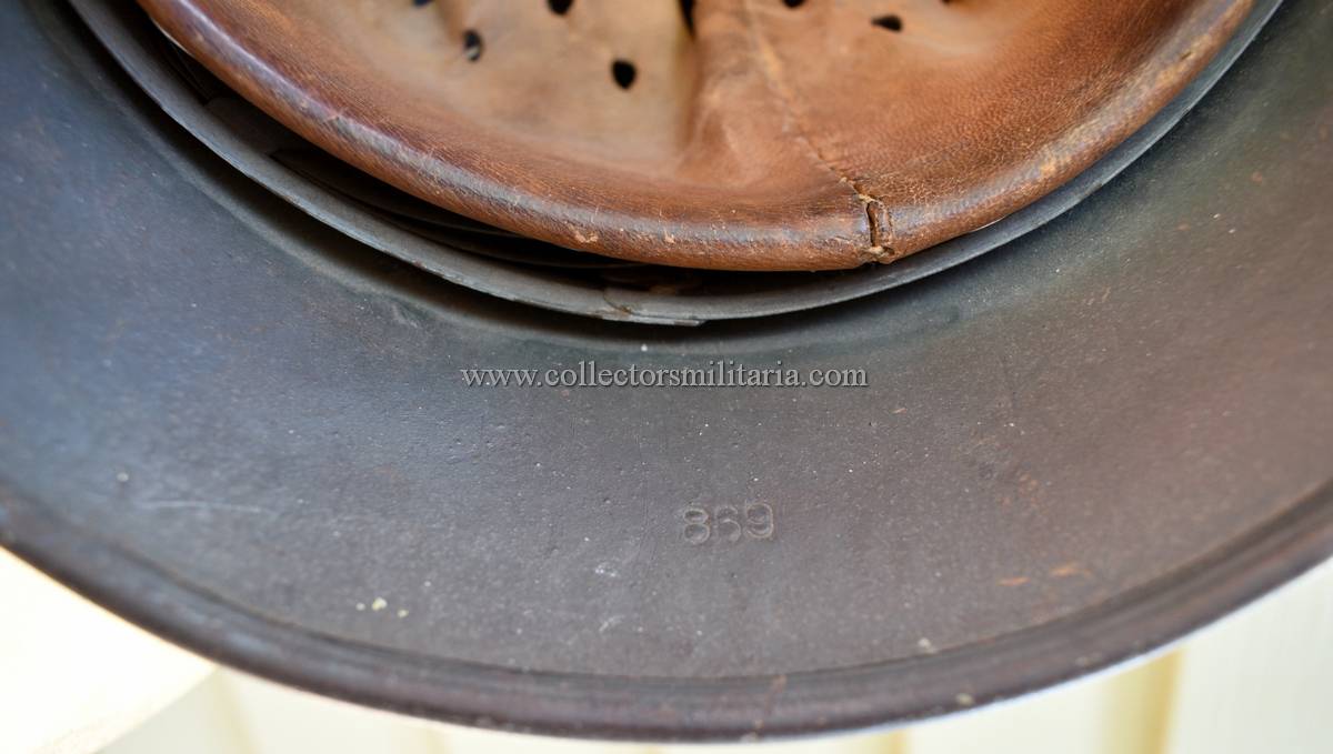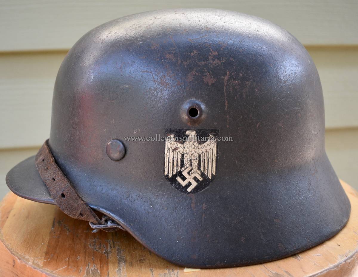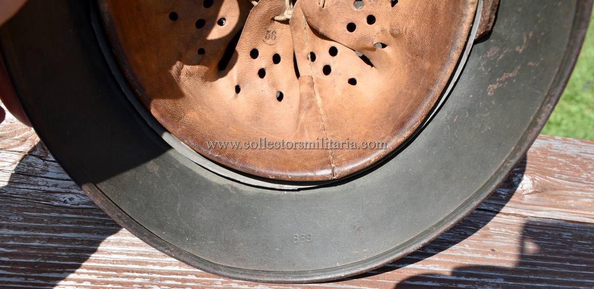 A very nice M40 single decal army helmet. The shell is an SE54 and comes with its original chin strap. The lot number is 869. A very nice helmet!