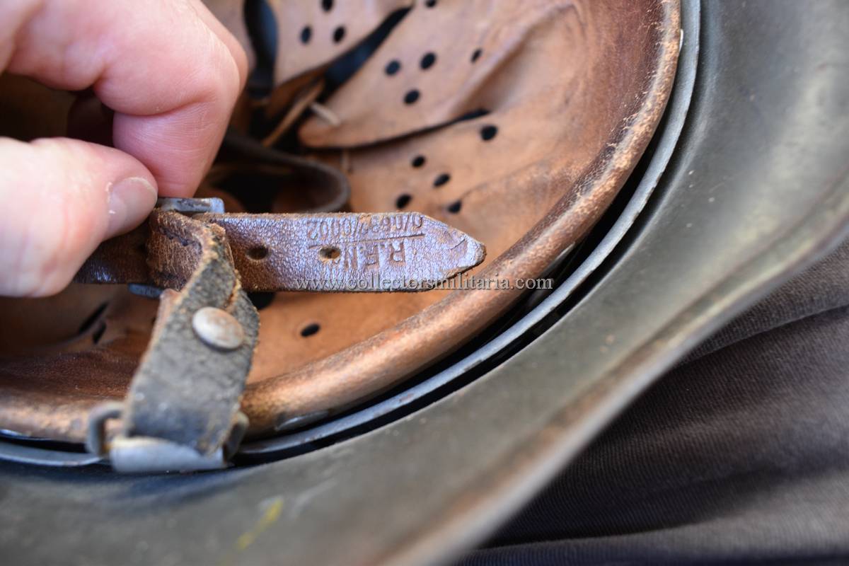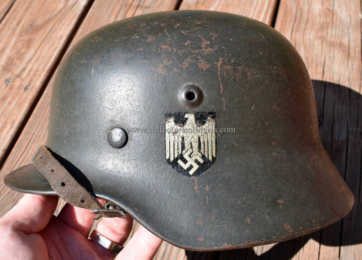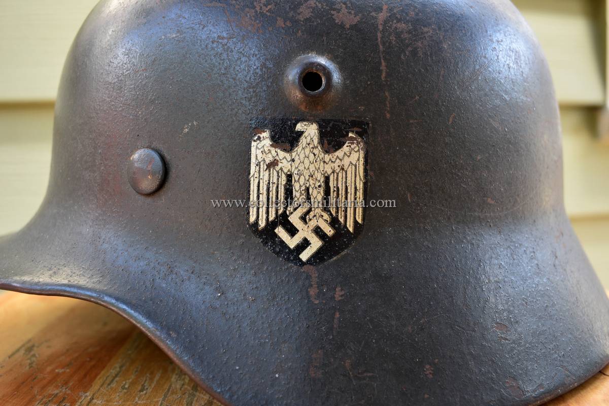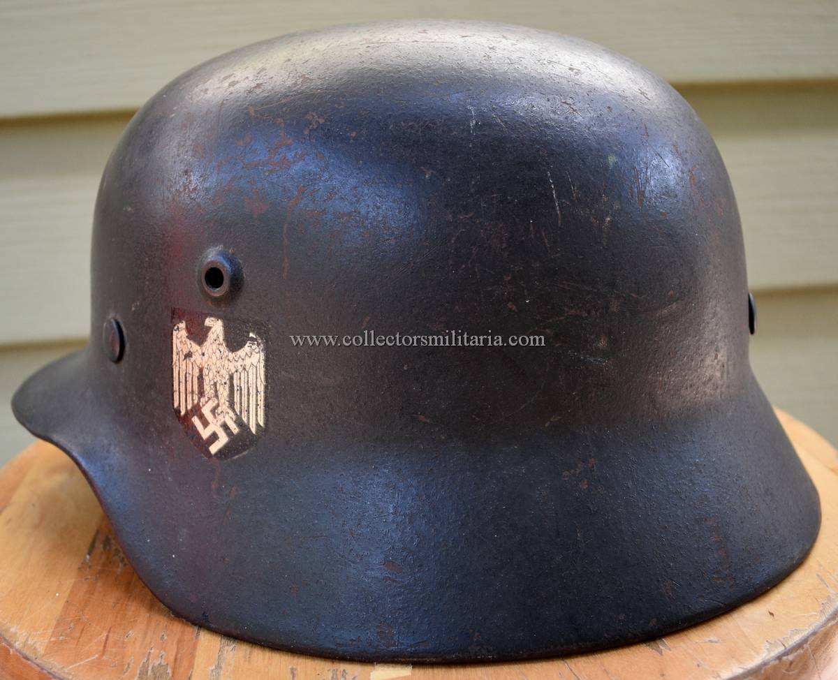 A very nice M40 single decal army helmet. The shell is an SE54 and comes with its original chin strap. The lot number is 869. A very nice helmet!